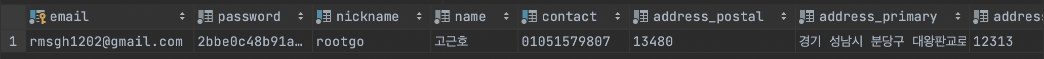 다음과 같이, 비밀번호가 해싱되어 나오는 것을 확인할 수 있습니다.