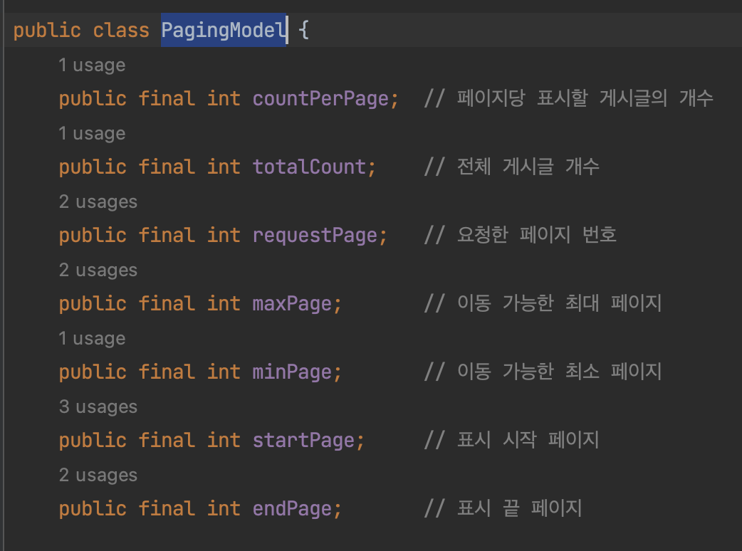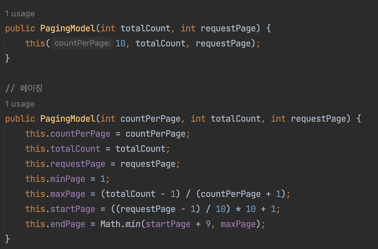 - [c] 페이징 당 표시할 게시글의 수
