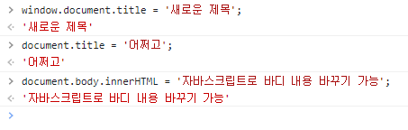 - body : <body ~> 부터 </body>까지를 의미한다. window.document.body 혹은 document.body로 접근한다. (그냥 body로는 접근 못함)