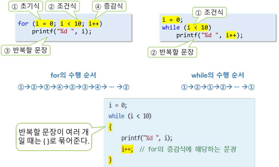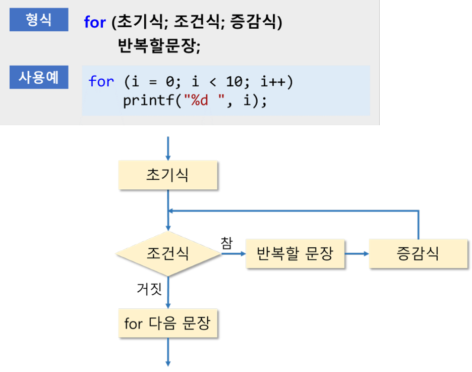- for문의 반복 회차마다 루프 제어 변수의 값이 변경되어, 특정 시점에 for의 조건식이 참이 되어 루프를 탈출할 수 있으면 된다.
