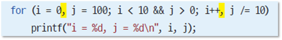 - for문에서 루프 제어 변수를 여러 개 사용할 수도 있다.