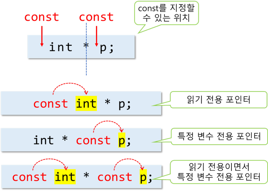· type형의 포인터는 항상 type형의 변수 또는 type형 배열의 원소를 가리킬 수 있다.