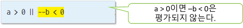 - 'expr1 || expr2'에서 expr1이 참이면 expr2는 평가되지 않는다.