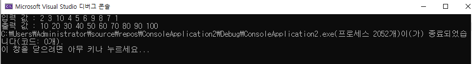 출력 값 : 10 20 30 40 50 60 70 80 90 100